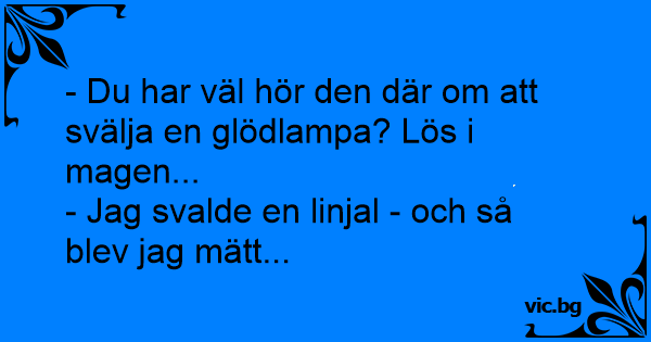 - Du har väl hör den där om att svälja en glödlampa? Lös i magen...