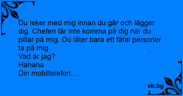Du leker med mig innan du går och lägger dig. Chefen får inte komma på dig när du pillar på mig. Du låter bara ett fåtal personer ta på mig.