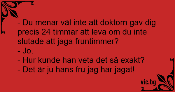- Du menar väl inte att doktorn gav dig precis 24 timmar att leva om du inte slutade att jaga fruntimmer?