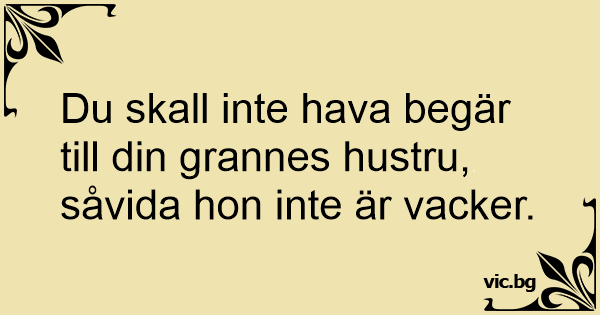Du skall inte hava begär till din grannes hustru, såvida hon inte är vacker.