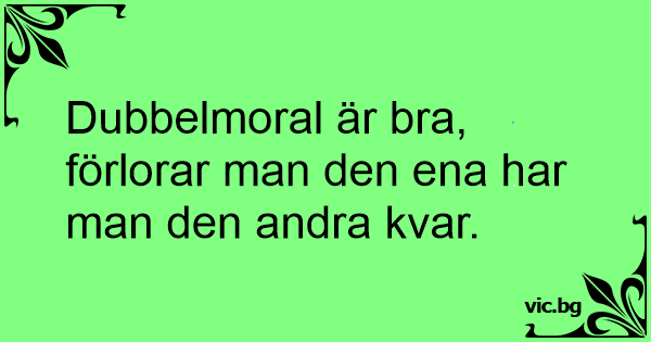 Dubbelmoral är вrа, förlorar man den ena har man den andra kvar.