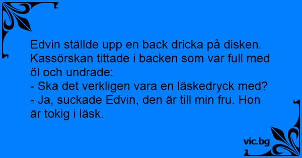 - Ja, suckade Edvin, den är till min fru. Hon är tokig i läsk.