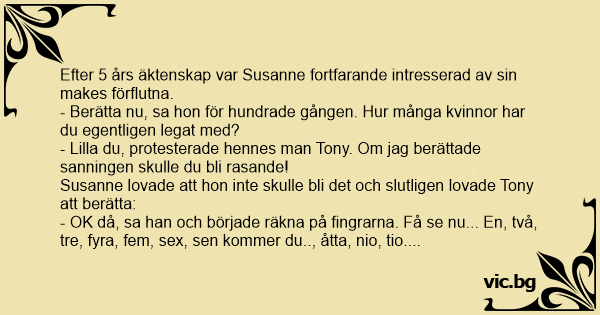 - Berätta nu, sa hon för hundrade gången. Hur många kvinnor har du egentligen legat med?