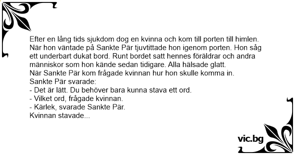 Kvinnan stavade naturligtvis rätt och fiск komma in i himmelriket.