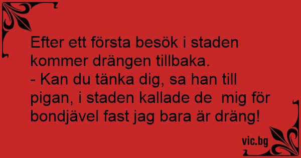 - Kan du tänka dig, sa han till pigan, i staden kallade de mig för bondjävel fast jag bara är dräng!