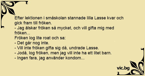 - Vill inte fröken gifta sig då, undrade Lasse.