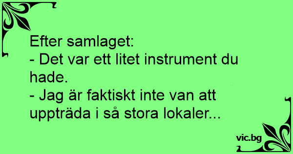 Frun efter samlaget: - Det var inte nåt stort instrument du hade och komma med. Gubben: - Nä, men så har jag aldrig spelat i så stora lokaler förr heller…