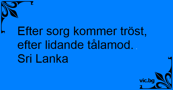 Efter sorg kommer tröst, efter lidande tålamod.