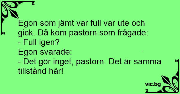 Egon som jämt var full var ute och gick. Då kom pastorn som frågade: