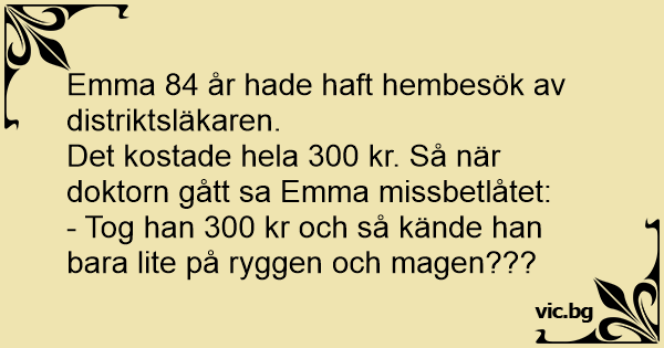 Det kostade hela 300 kr. Så när doktorn gått sa Emma missbetlåtet: