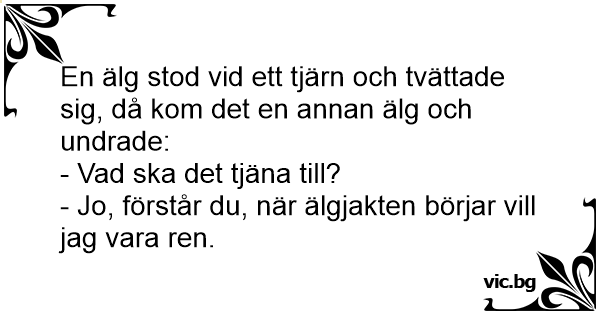 En älg stod vid ett tjärn och tvättade sig, då kom det en annan älg och undrade: