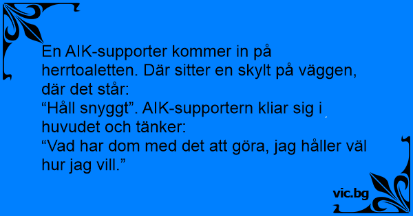 En AIK-supporter kommer in på herrtoaletten. Där sitter en skylt på väggen, där det står: