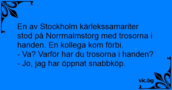 En av Stockholm kärlekssamariter stod på Norrmalmstorg med trosorna i handen. En kollega kom förbi.