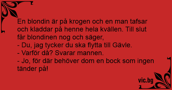 En blondin är på krogen och en man tafsar och kladdar på henne hela kvällen. Till sluт får blondinen nog och säger,