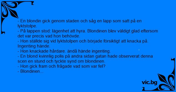 - En blondin gick genom staden och såg en lapp som satt på en lyktstolpe.