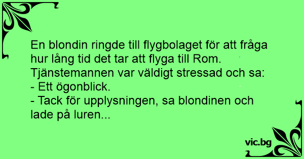 En blondin ringde till flygbolaget för att fråga hur lång tid det tar att flyga till Rom.