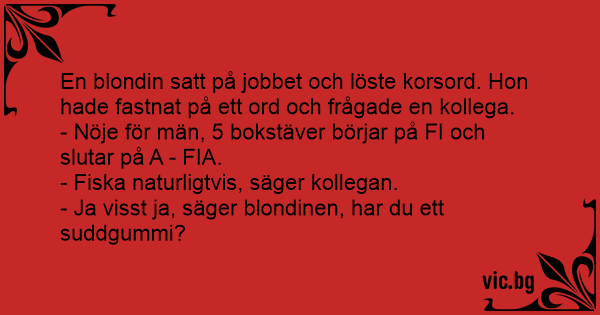 - Nöje för män, 5 bokstäver börjar på FI och slutar på A - FIA.