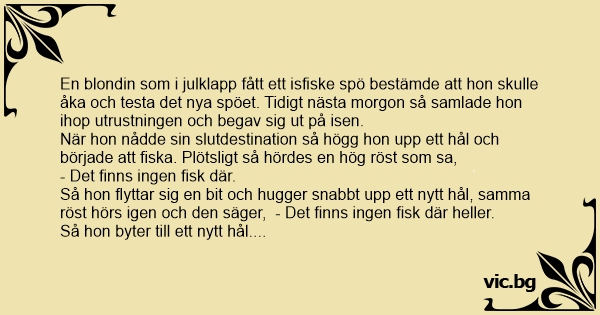 - Hur vet du att det inte finns nån fisk i hålet. Frågar blondinen.