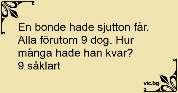 En bonde hade sjutton får. Alla förutom 9 dog. Hur många hade han kvar?
