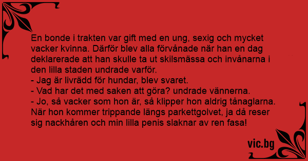 En bonde i trakten var gift med en ung, sexig och mycket vacker kvinna. Därför blev alla förvånade när han en dag deklarerade att han skulle ta ut skilsmässa och invånarna i den lilla staden undrade varför.