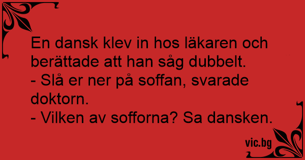 En dansk klev in hos läkaren och berättade att han såg dubbelt.