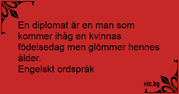 En diplomat är en man som kommer ihåg en kvinnas födelsedag men glömmer hennes ålder.