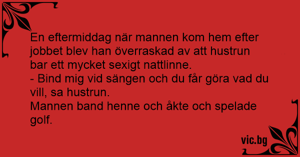 - Bind mig vid sängen och du får göra vad du vill, sa hustrun.