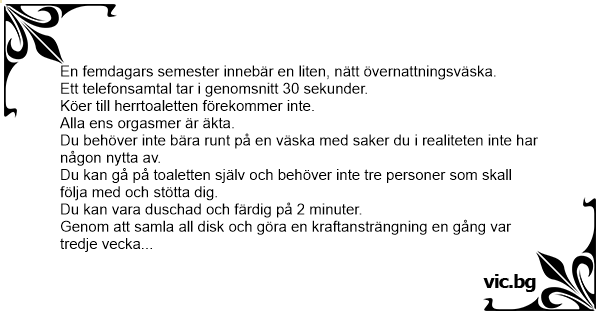 En femdagars semester innebär en liten, nätt övernattningsväska.