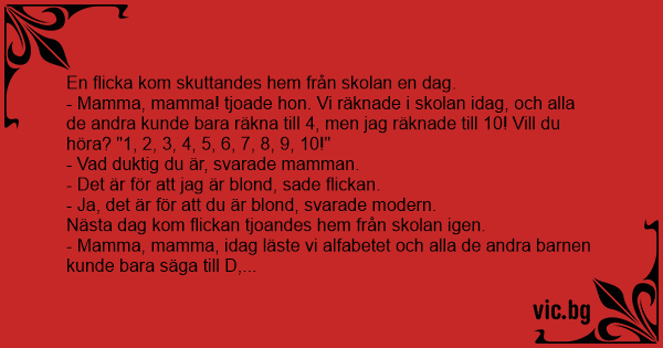 - Ja, det är för att du är blond, svarade modern.