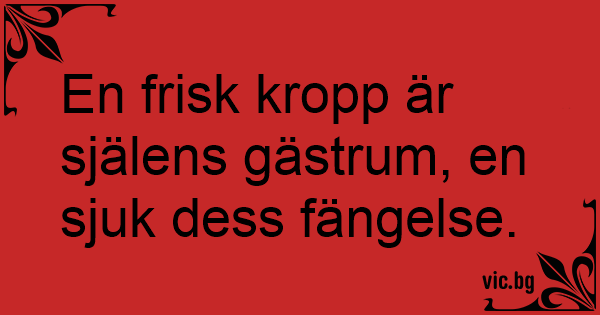 En frisk kropp är själens gästrum, en sjuk dess fängelse.
