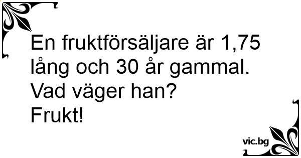 En fruktförsäljare är 1,75 lång och 30 år gammal. Vad väger han?