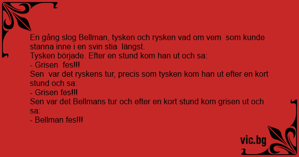 En gång slog Bellman, tysken och rysken vad om vem som kunde stanna inne i en svin stia längst.