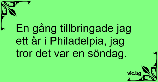 En gång tillbringade jag ett år i Philadelpia, jag tror det var en söndag.