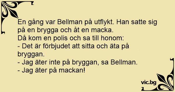 En gång var Bellman på utflykt. Han satte sig på en brygga och åt en macka.