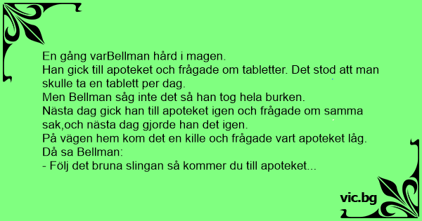 Han gick till apoteket och frågade om tabletter. Det stod att man skulle ta en tablett per dag.