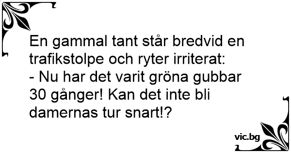 En gammal tant står bredvid en trafikstolpe och ryter irriterat: