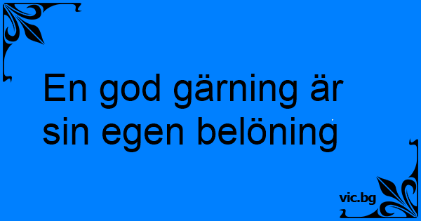 En god gärning är sin egen...