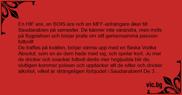 En HIF:are, en BOIS:are och en MFF-anhängare åker till Saudiarabien på semester. De känner inte varandra, men möts på flygplatsen och börjar prata om sitt gemensamma passion: fotboll!