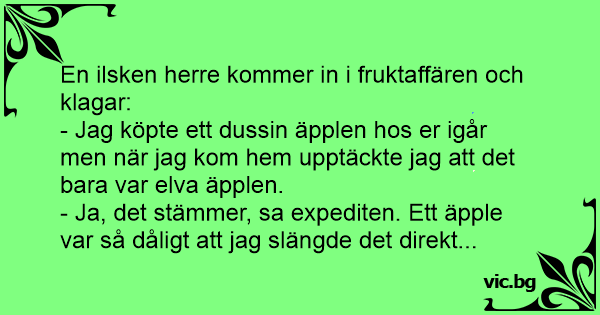 - Ja, det stämmer, sa expediten. Ett äpple var så dåligt att jag slängde det direkt...