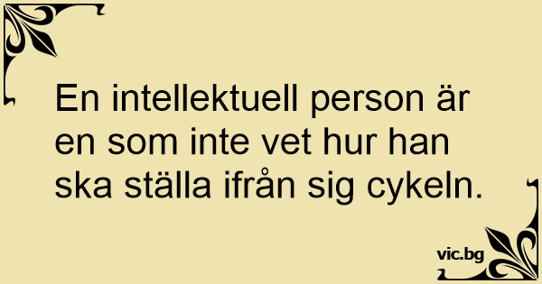 En intellektuell person är en som inte vet hur han ska ställa ifrån sig cykeln.