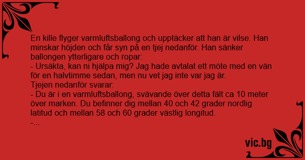 - Ja det är jag, svarar ballongfararen, men hur kunde du veta det?