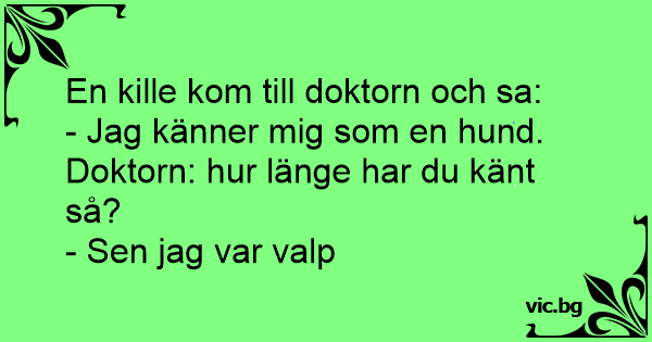 - Doktorn, du måste hjälpa mig. Jag tror jag är en hund. - Jaså? Hur länge har det pågått? - Sedan jag var valp.