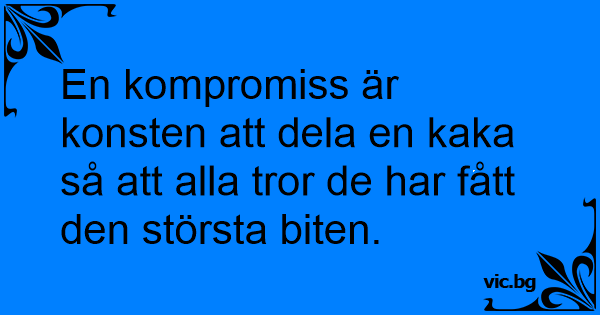 En kompromiss är konsten att dela en kaka så att alla tror de har fått den största biten.