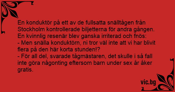 - För all del, svarade tågmästaren, det skulle i så fall inte göra någonting eftersom barn under sеx år åker gratis.