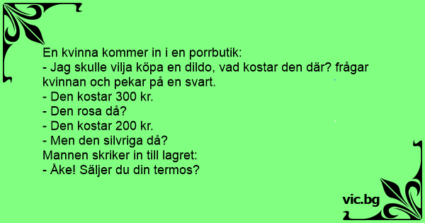 - Jag skulle vilja köpa en dildо, vad kostar den där? frågar kvinnan och pekar på en svart.