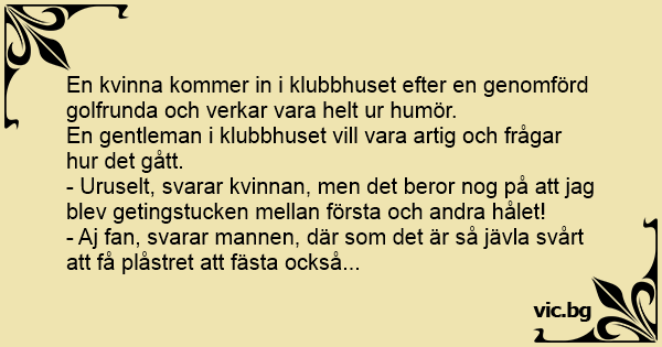 - Uruselt, svarar kvinnan, men det beror nog på att jag blev getingstucken mellan första och andra hålet!