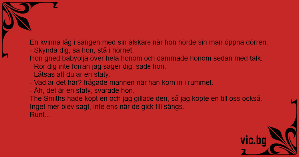 En kvinna låg i sängen med sin älskare när hon hörde sin man öppna dörren.