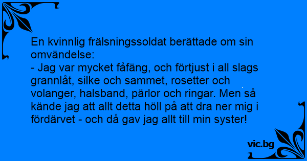 En kvinnlig frälsningssoldat berättade om sin omvändelse: