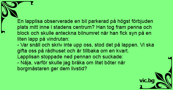 En lapplisa observerade en bil parkerad på högst förbjuden plats mitt inne i stadens centrum? Han tog fram penna och block och skulle anteckna bilnumret när han fiск syn på en liten lapp på vindrutan:
