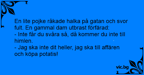 En lite pojke råkade halka på gatan och svor fult. En gammal dam utbrast förfärad: